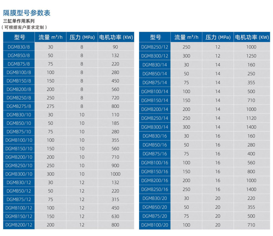 隔膜泵分三缸單作用隔膜泵、雙缸雙作用隔膜泵兩種類型。